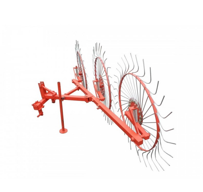 Грабли колесно-пальцевые «Солнышко» на 3 колеса на минитрактор относятся к качественным граблям-ворошилкам, которые агрегатируются с минитракторами. Используются для ворошения скошенных трав при сушке их на сено в полевых условиях, сгребания сухого сена в продольные валки, а так же для сгребания соломы после уборки зерновых или скошенной зеленой массы.